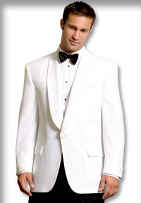 Black Tuxedo Pants, White Shawl Lapel Dinner Jacket,