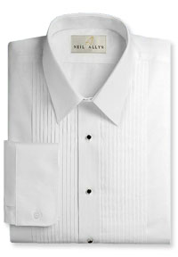 White 1/4" Pleat Lay Down Collar Tuxedo Shirt, Colours Satin